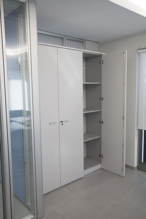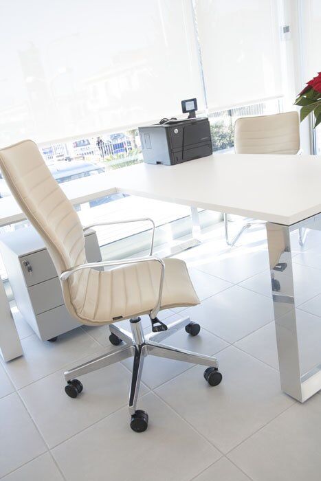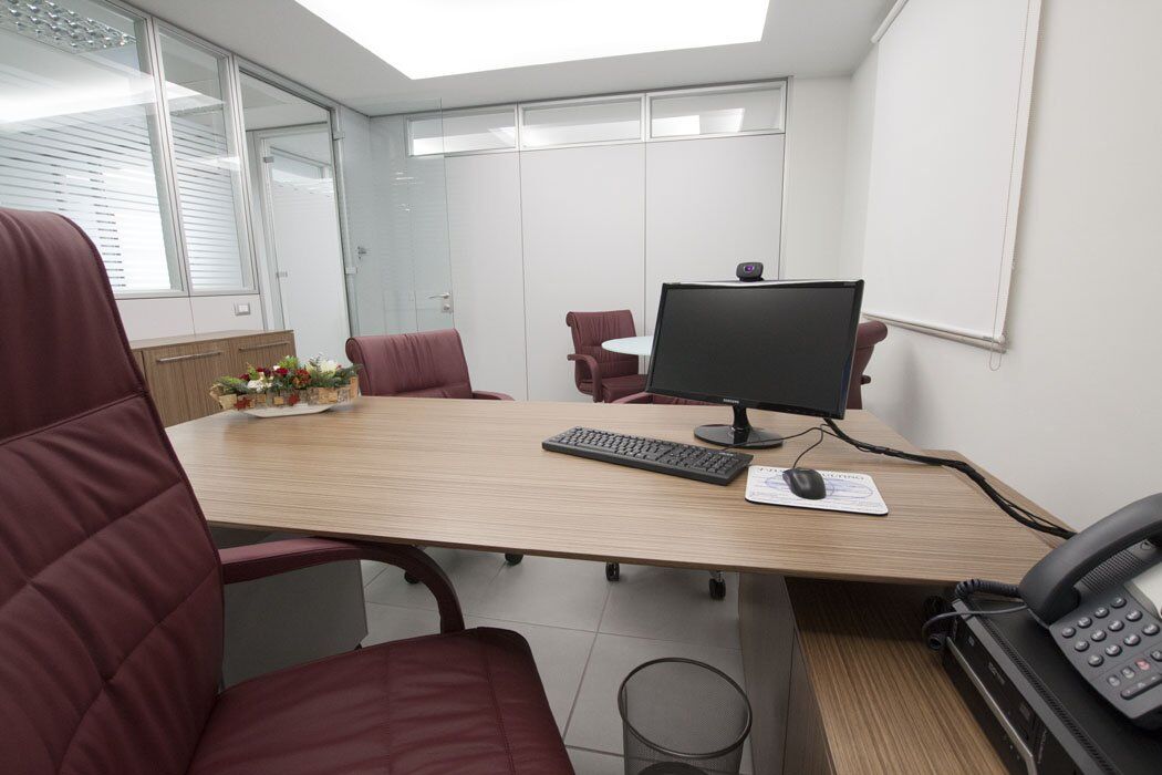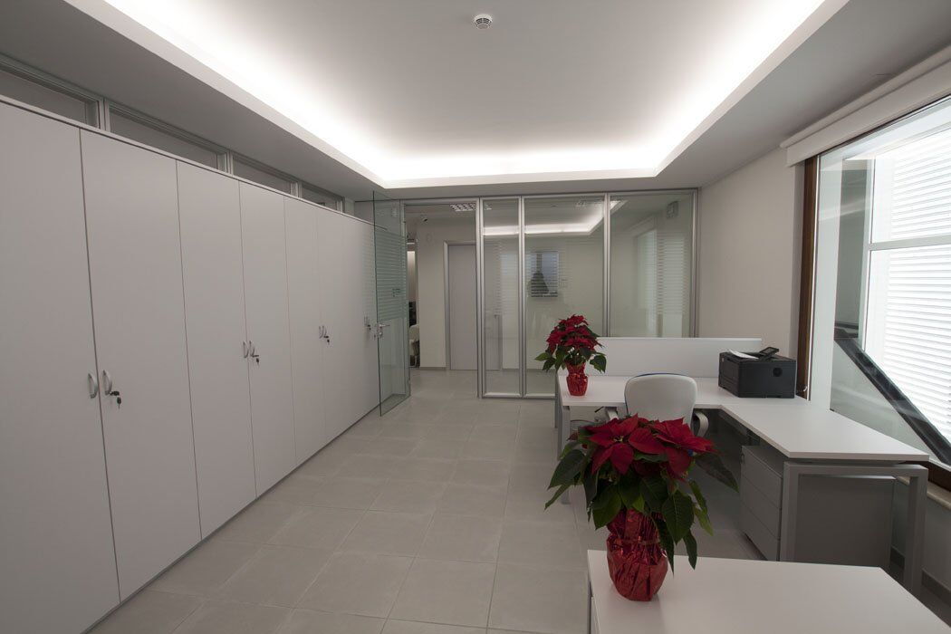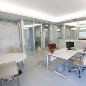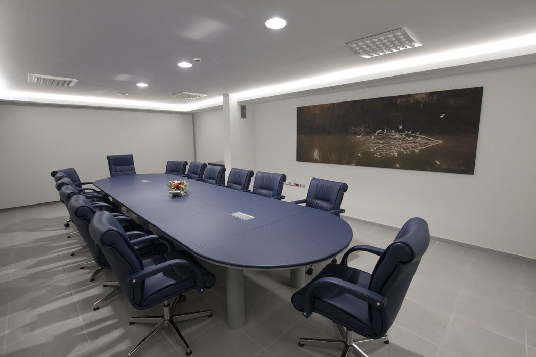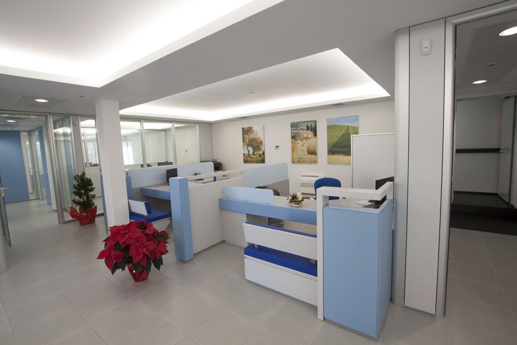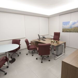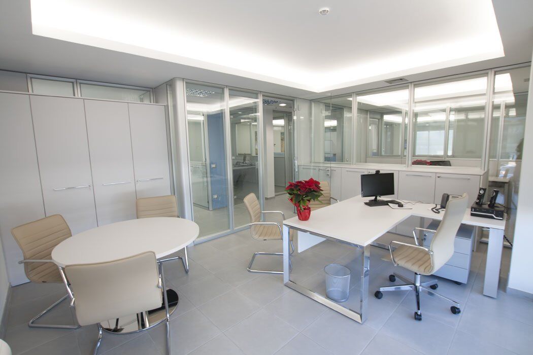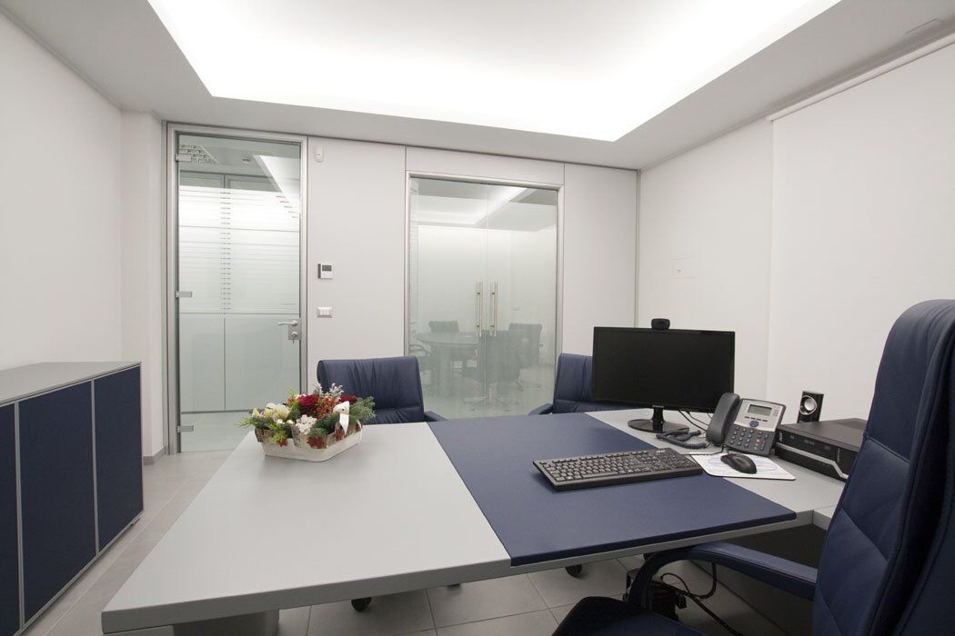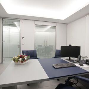Pour le mobilier ils ont été utilisés plusieurs séries de meubles. Cela a créé un mélange parfait de styles différents, réalisés selon le type de bureau. Dans les bureaux des directeurs, il a été choisi la série Pitagora. Pitagora est une série forte, élégante et raffinée: idéal pour les bureaux de direction. Pour les bureaux des employés et des travailleurs du front office, ils ont été choisis les séries Methro et Compact. Celles-ci sont deux séries linéaire et original: très bon pour donner une touche moderne à l’environnement. Pour la salle de conférence a été choisi série Giove. Une ligne de mobilier confortable et élégant, idéal pour une salle de réunion.