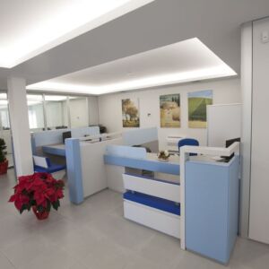 Arcadia a réalisée les sièges de la Banque de Vomano à Scerne de Pineto et à Montorio au Vomano. Les deux banques ont été conçus par notre départment technique. Le département technique Arcadia, avec professionnalisme est en mesure de concevoir les cloisons et les meubles. Ont été choisis pour les cloisons la Wall System dans les bureaux, en maintenant des couleurs claires, ça, pour éclairé les environnements. De plus, il a été également choisì les cloisons en vitrage Kristal 5 avec l’utilisation de pellicule en PVC pour donner plus d’intimité aux bureaux.