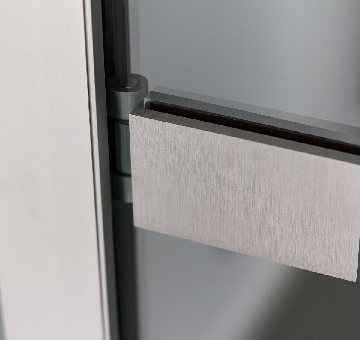 La parete può essere fornita con vetro trasparente o satinato ed è possibile la personalizzazione tramite l’inserimento di PVB colorato all’interno dei vetri, laccatura RAL o con l’applicazione di vetrofanie viniliche.