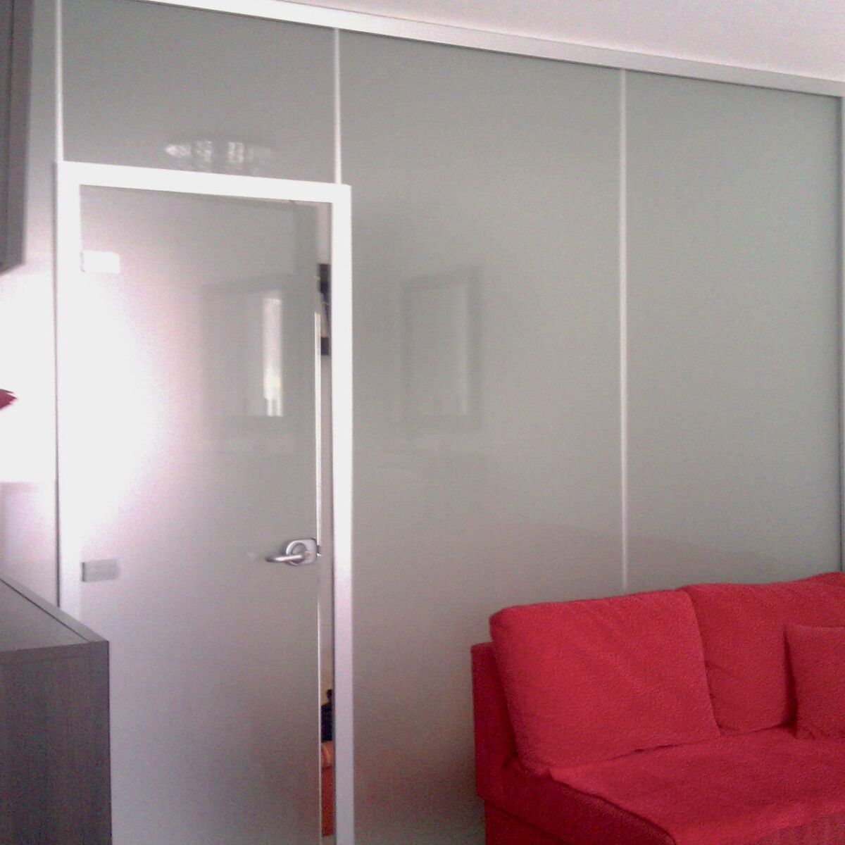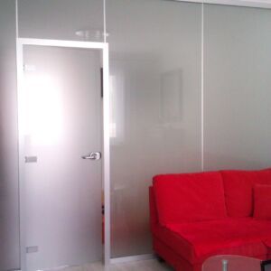Chudíková Per Chudíková è stata realizzata una parete Kristal 5 con vetro satinato, telaio e separatori in alluminio e porta battente con maniglia Hoppe.
