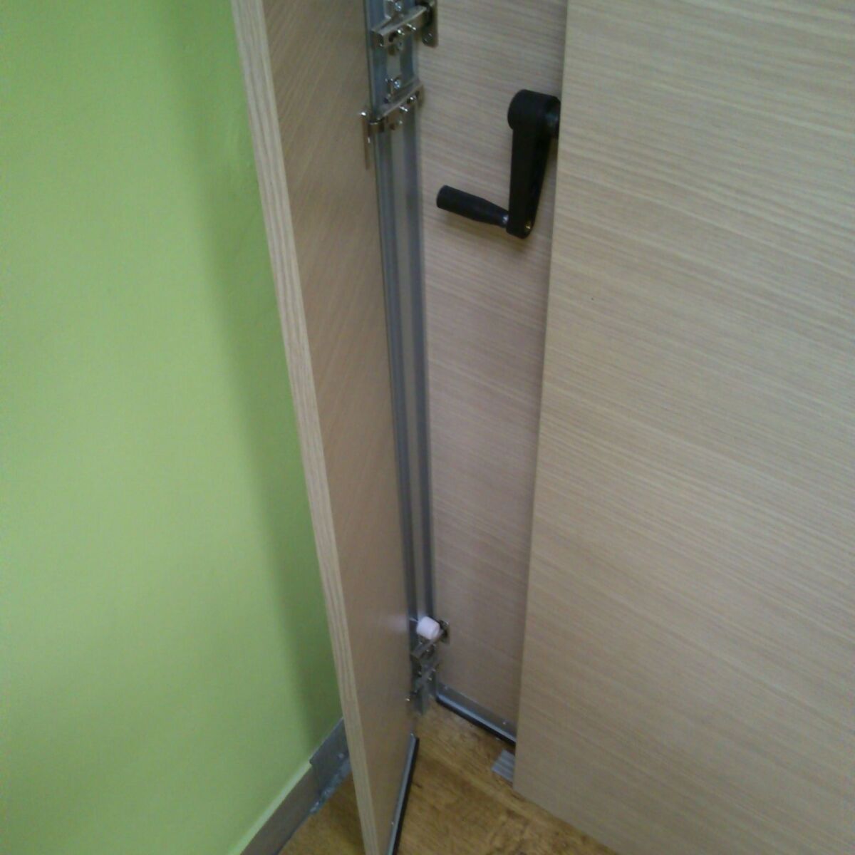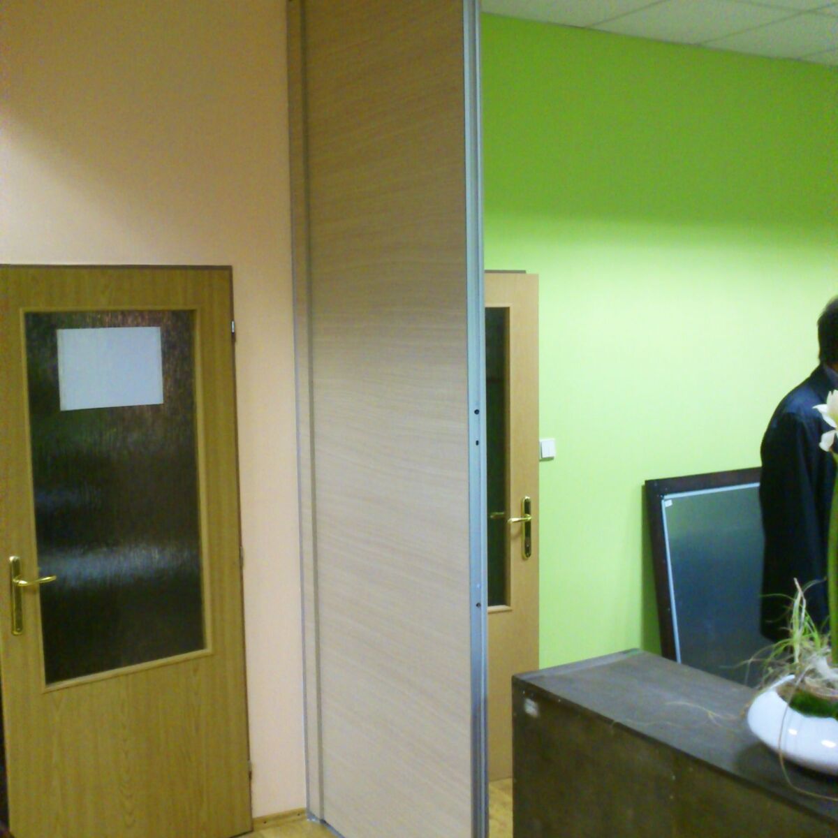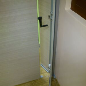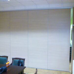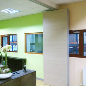 A Gáň in Slovacchia è stata realizzata da Arcadia, in collaborazione con Stavea Interior, la Rolling Wall Single Trolley con pannelli in melaminico. La particolarità di questa parete è nella copertura della maniglia che avviene tramite due pannelli. Questi ultimi fanno sì che, quando la parete è aperta, risulti una superficie liscia.